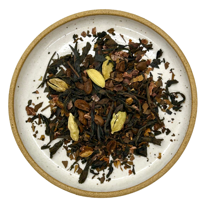 Ingredients- Oolong tea°, roasted yerba mate°, coffee bean°, cacao°, chicory root°, cardamom° and natural vanilla flavor °Organic